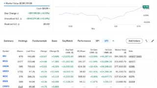 米国株保有銘柄のチャート本日の主要指数は全てプラスで終わった。今日は原油先物相場の上昇が一服し、幅広い銘柄を買い直す動きが出た。半導体メモリのマイクロンの台湾工場の拡張工事での生産拡大を好感して半導体を始めハイテク株が買われた。持ち株の方は...