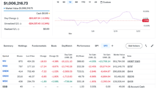 米国株保有銘柄のチャート本日の主要指数は全てプラスで引けた。トランプ大統領が発電所への攻撃を遅らす発言とイランとの協議を行った発言で戦争が終わる可能性があると判断されてザラ場が始まる前のプレマーケットの段階で大きく全体的に株価が上がった。そ...
