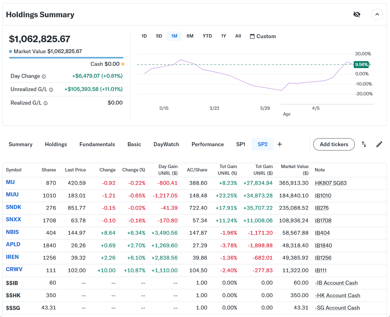 Day Changeは+$6,479.07 (+0.61%)のプラスでザラ場は引けた。