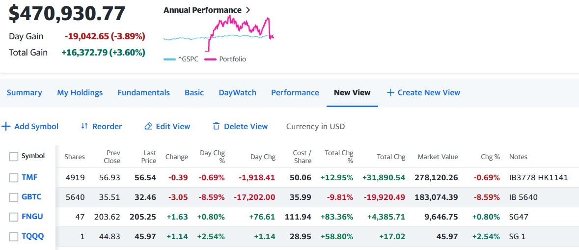 トータルで-19,042.65 (-3.89%)の大きなマイナスで引けた。金利が上がりTMFがさえなかった事とビットコインの調整が原因。