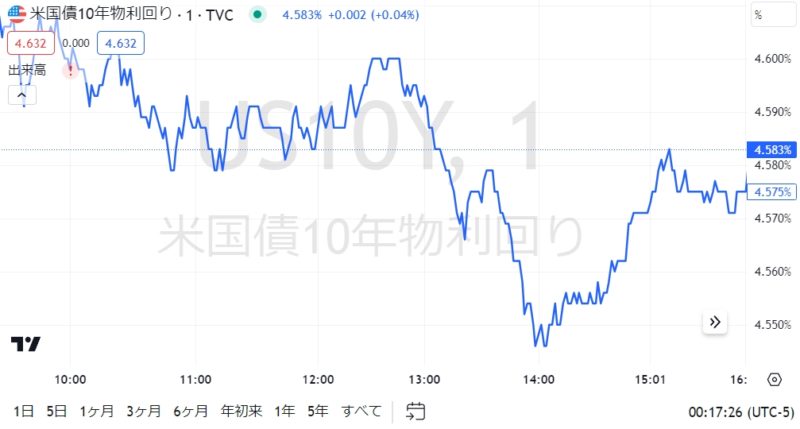 今日の長期債券(US10Y)の動き