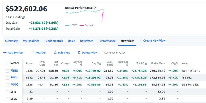 米国株2024年01月18日(木) 寝金増 2024.01.19 目次 米国株保有銘柄のチャート米国債10年物利回り米国株の今日の成績 米国株保有銘柄のチャート 昨日に引き続き、体調不良でザラ場を見る事が出来ませんでした。検査の結果コロナでした。40度近い熱が出てずっと寝ています。結果爆上げで終了してるので、全く問題無しです。笑 魅惑のレバレッジETF(米国株)を14種類まとめて解説の記事はこちら 米国債10年物利回り 4.1%超えてますね。もし債券レバ3倍のTMFをガチホしてたら悲惨な状況だったと思います。 米国株の今日の成績 トータルで+28,931.40 (+5.86%)のプラス引けで終了。 米国株取引に強い証券会社4つ ドル建て中国株ETFの世界をレバレッジETFまで徹底解説の記事はこちら