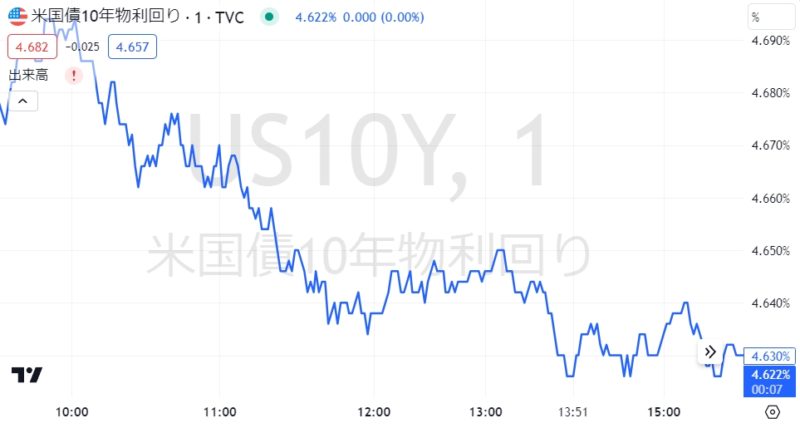 債券は下げ続けたが4.6%台より下がる気配がない、格付け会社の国債格下げで一旦金利が上昇したのでしょうがないが、4.5%以下に下がらないと今年末の上昇は厳しそう。