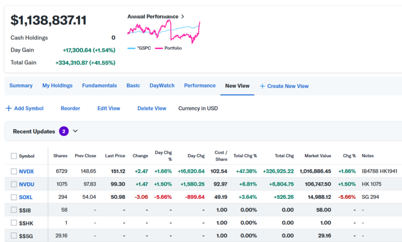 トータルで+$17,300.64 (+1.54%)のプラスでザラ場は引けた。もうすでに連続7日間プラス引けしているので、そろそろ一旦調整来そうな雰囲気である。