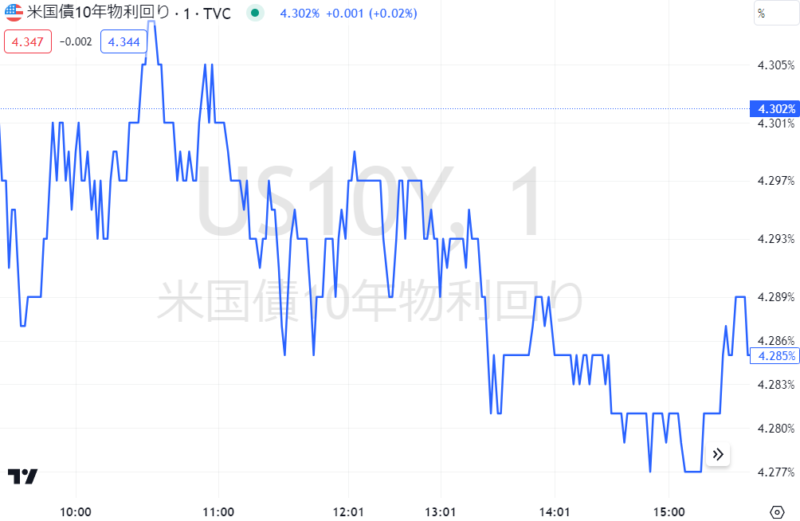 本日は、金利は下げ続けたが、明日の雇用統計次第で上にも下にも大きく動くので、雇用統計前夜の金利の動きは、あまり関係ないかと思う。本日は金利は下がり続けたが、株は前半大きく下がったが、後半に掛けて回復して、大きく下がらずにザラ場は引けた。