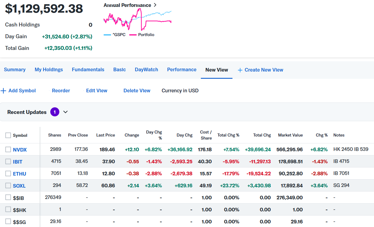 トータルで+$27,190.64(2.46%)のプラスでザラ場は引けた。100万ドル超えたのに無理して全力するのは意味無いので様子見ながら、ここぞという時に少しずつ入ったり出たりして、良さそうなら放置で利益あげて行こうと思う。ただこの辺の考えは、毎日面白いようにコロコロ考えが変わる。