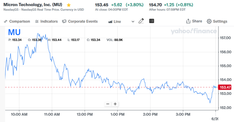 持ち越していないので、ここには載っていないが、プレでAVGO(ブロードコム)を10万ドル購入したが、ザラ場でマイナスになったので損切りしてMUに入った。