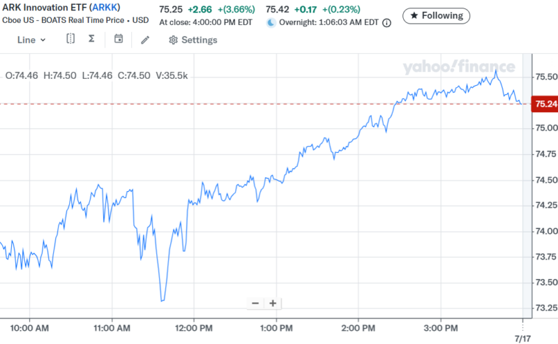 本日は生産者物価指数(PPI)の発表があった。PPIコアは、予想0.2%、結果0.00%と下振れた。これにより関税の影響のインフレ懸念が払拭されて株価は上がった。昨日の消費者物価指数(CPI)に引き続き、PPIでもインフレの兆候が見られない事が確認された。それを受けて各指数はプラスでザラ場は引けた。気になるのはFRB議長のパウエルの解任騒動だ。トランプが共和党の会合でパウエルの解任を打診したニュースが出たが、その後にトランプはそのニュースを否定した。ただし最近の政権の一連の流れはFRBに政治介入して議長を辞めさせる方向に動いている。