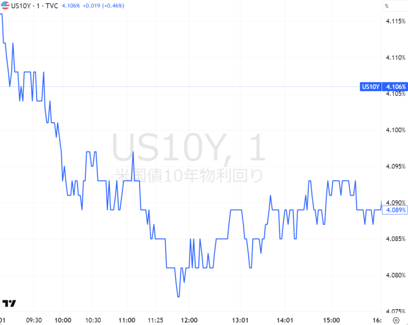 米国債10年金利は、4.1%を下回って下げてきた。複数の民間の雇用動向調査の結果が悪いので金利は下げているようだ。