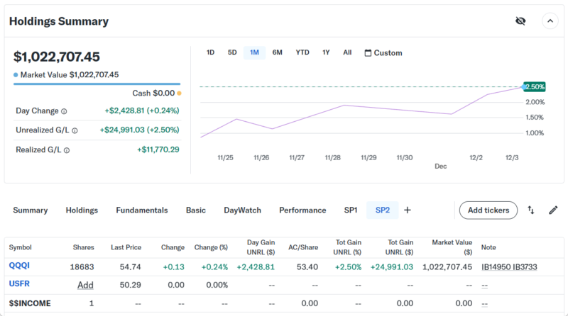 Day Changeは+$2,428.81(+0.24%)のプラスでザラ場は引けた。