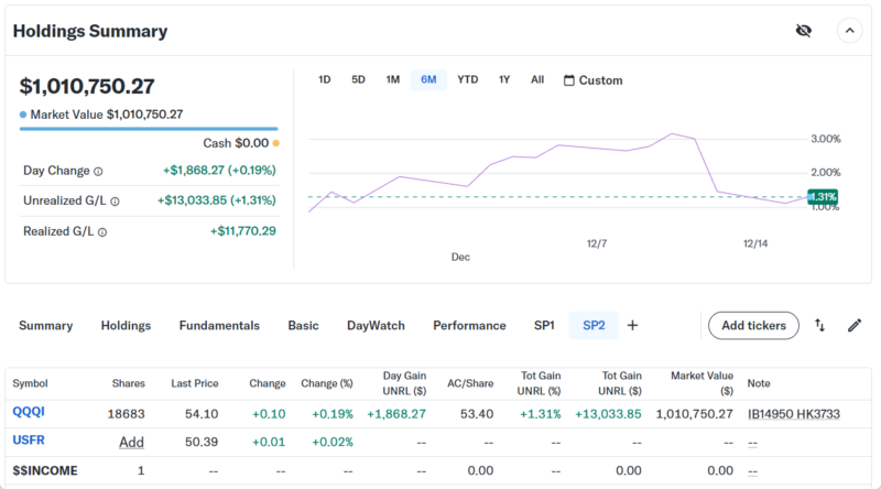 毎年健康診断に行く前日は保有銘柄が上昇してるので、売らないで放置してましたが、今日は地合い悪そうなので全部売りました。当初はパランティアのレバ2倍PLTUだけ売ろうと思いましたが、本日の雇用統計の結果が悪くて利下げ材料としては良いのに木曜日にCPIを控えているせいか地合いがあまり良くないのでIB証券保有分は全部売りました。それでもサブ証券にPLTRが34万ドル、それと高配当ポートフォリオのQQQIが100万ドルほど保有してます。
