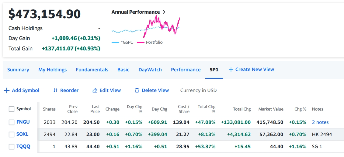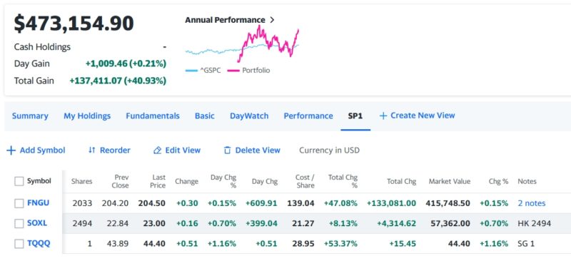 トータル+1,009.46 (+0.21%)の辛うじてプラスの微寝金増で引けた。もう50万ドル達成が目前だけど、7月の年初来高値を超えたので、戻り相場は終わり、これからはそう簡単に上がらない展開を予想。