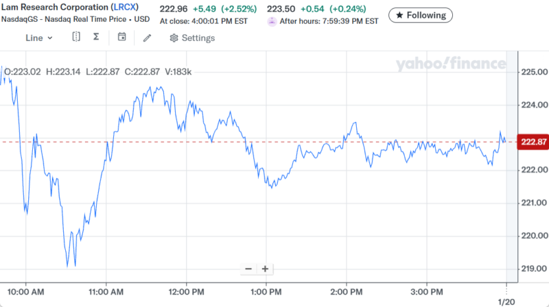 Day Changeは+$54,650.29 (+5.01%)の大きなプラスでザラ場は引けた。半導体主力のポートフォリオになったが、半導体は大型株でもボラが高いので大きく下げてきた時の対応が難しそうだが、資金の流れているセクターや銘柄に標準を合わせないと大きく利益は出ない。上の画像のDay Changeは本日、複数の売買をしたので正しく表示されていない。その為、前日の終値のマーケットバリューと本日の終値のマーケットバリューから正確なDay Changeを計算した。