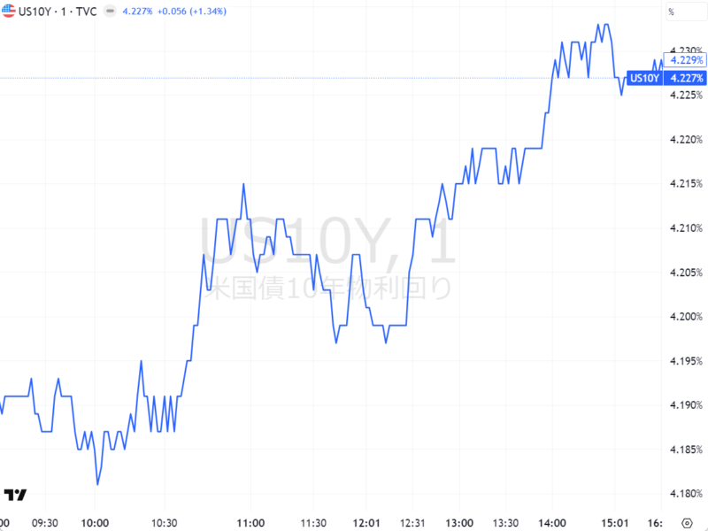 本日の米国債10年金利は終日上げ続けた。上でも書いたが次期FRB議長の不透明感から金利が上昇したようだ。4.2%を軽く突破して4.22%台でザラ場は引けた。