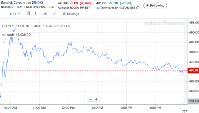 Day Changeは-$25,814.53(-2.08%)のマイナスでザラ場は引けた。