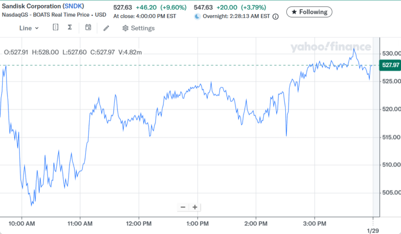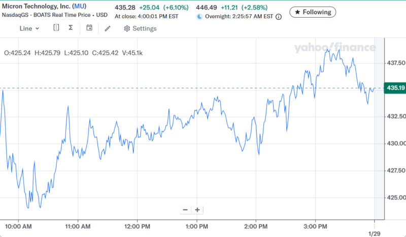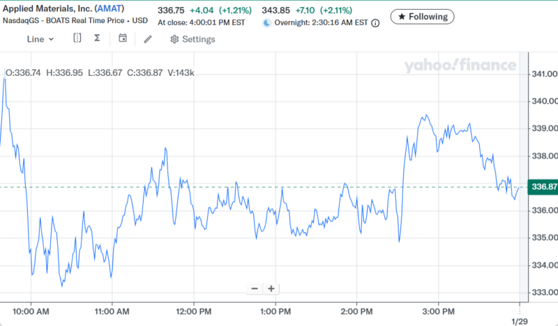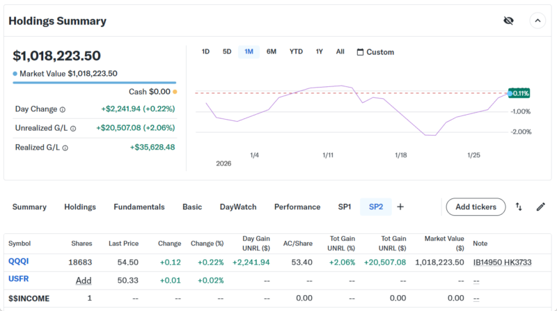 Day Changeは+$98,543.55(+7.66%)の大きなプラスでザラ場は引けた。まだ1月は終わっていないが年初から40万ドル近い含み益が出ている。AI相場の中心がソフトウェア系から半導体セクターに移行して、相場の波に乗れた事によるもの。
