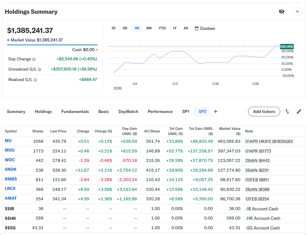 Day Changeは+$5,545.68(+0.40%)のプラスでザラ場は引けた。