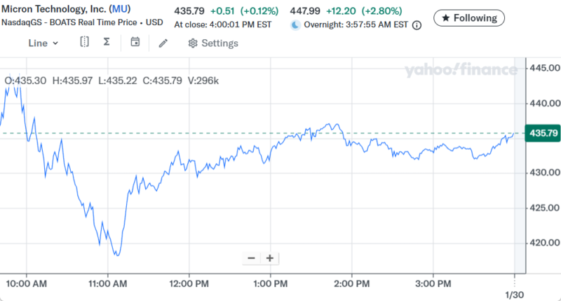 Day Changeは-$3,176.07(-0.31%)のマイナスでザラ場は引けた。