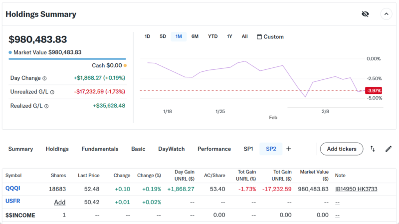 Day Changeは+$1,868.27(+0.19%)のプラスでザラ場は引けた。