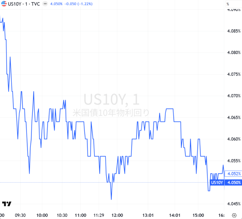 本日の米国債10年金利は、CPIの発表後に急降下した。CPIでインフレが観測されないので利下げの障害が1つ減ったと言う事で金利が下がった模様。