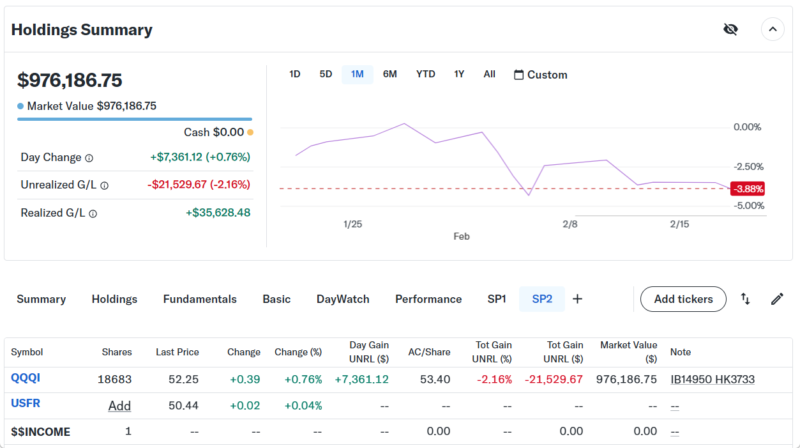 Day Changeは+$55,244.6 (4.92%)のプラスでザラ場は引けた。上の画像のDay Changeは本日売買をしたので正しく表示されていない。その為、前日の終値のマーケットバリューと本日の終値のマーケットバリューから正確なDay Changeを計算した。