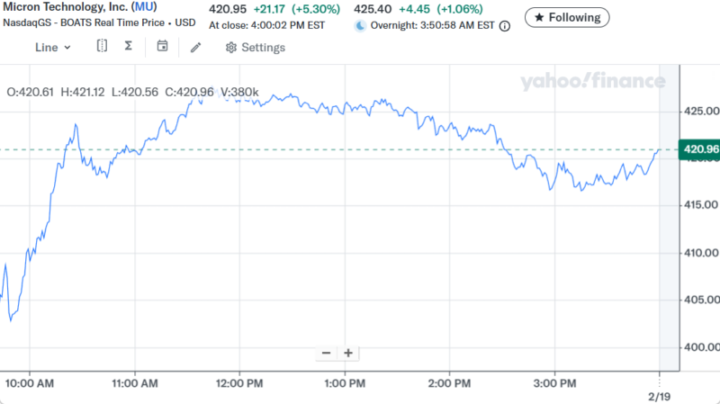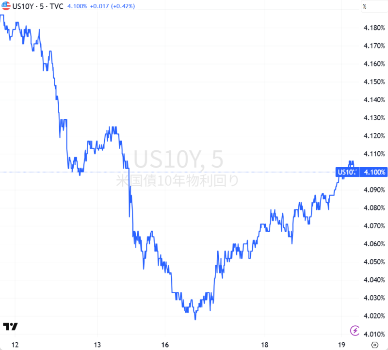 米国債10年金利の5日間チャート。4.02%まで下がってから、この2日間で上昇している。