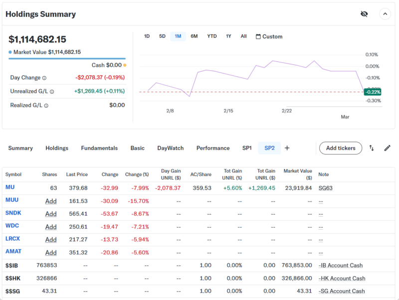 持ち株はマイクロン(MU)の63株のみで、ほぼノーポジ状態。