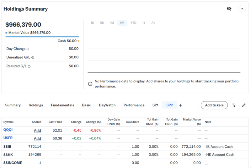 配当ポートフォリオはノーポジなので今日の株価の増減は無し。