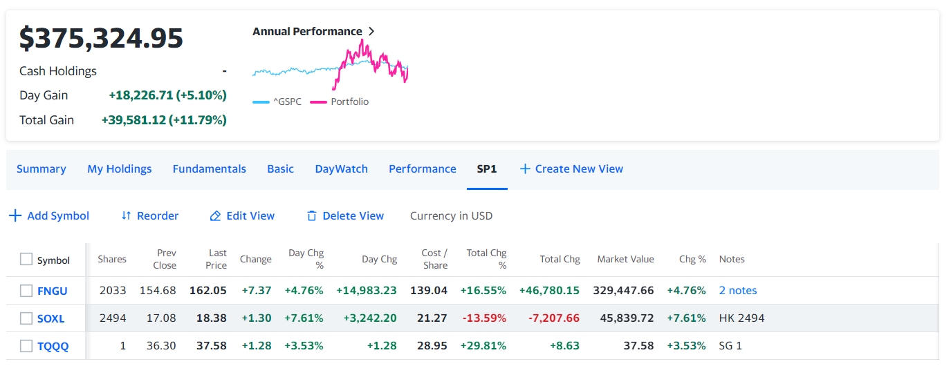 引き締めの終わりを臭わせたFOMC以降の爆上げにより、本日もトータルで+18,226.71 (+3.67%)のプラス、直近の目標は40万ドル奪還である、パウエル以降は寝金増が続く。