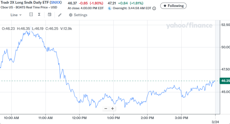 Day Changeは-$107,970.73 (9.69%)の大きなマイナスでザラ場は引けた。金曜日と合わせると2日間で約20万ドル(日本円で約3,200万円)の利益が吹き飛んでいる。