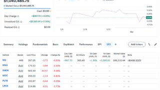 おはぎゃー 米国株 2026年03月05日(木) ホルムズ海峡閉鎖 米国株保有銘柄のチャート本日の主要指数は全てマイナスで終わった。ダウの終値が784.67ドルのマイナスを付けた。一方で原油価格は一時82ドルを付けて2024年以来の高値に達した。ホルムズ海峡が閉鎖された影響で原油価格は高騰して株価は急落した... 2026.03.06 おはぎゃー米国株の投資記録